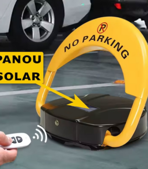Blocator loc parcare automat Cu Panou Solar, cu 2 telecomenzi si alarma, Alimentare Solara, suporta 2 tone, Galben/Negru, rezistent intemperii