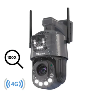 Camera de supraveghere 4G Cartela SIM 6K, 100X, 2 lentile, Control din aplicatie, Detectie umana, Rezistenta la apa IP66