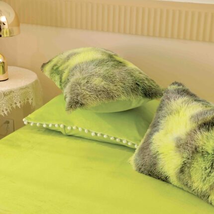 Lenjerie De Pat Pufoasa, 6 Piese, FLUFFY – Verde & Gri