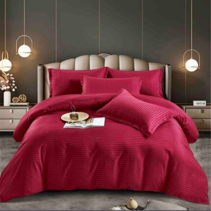 Lenjerie HoReCa, pat 1 persoana, damasc finetat, Deluxe, 4 piese, Rosu