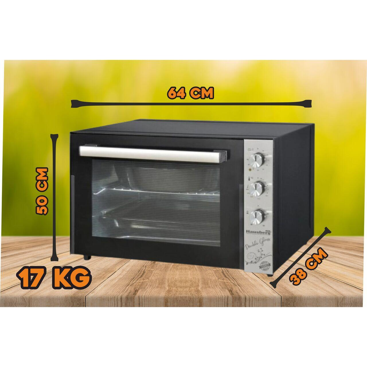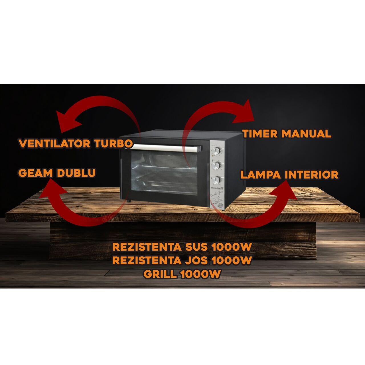 Cuptor electric Hausberg HB-8020 capacitate 70l, ventilator turbo, Lampa interior, geam dublu, Negru