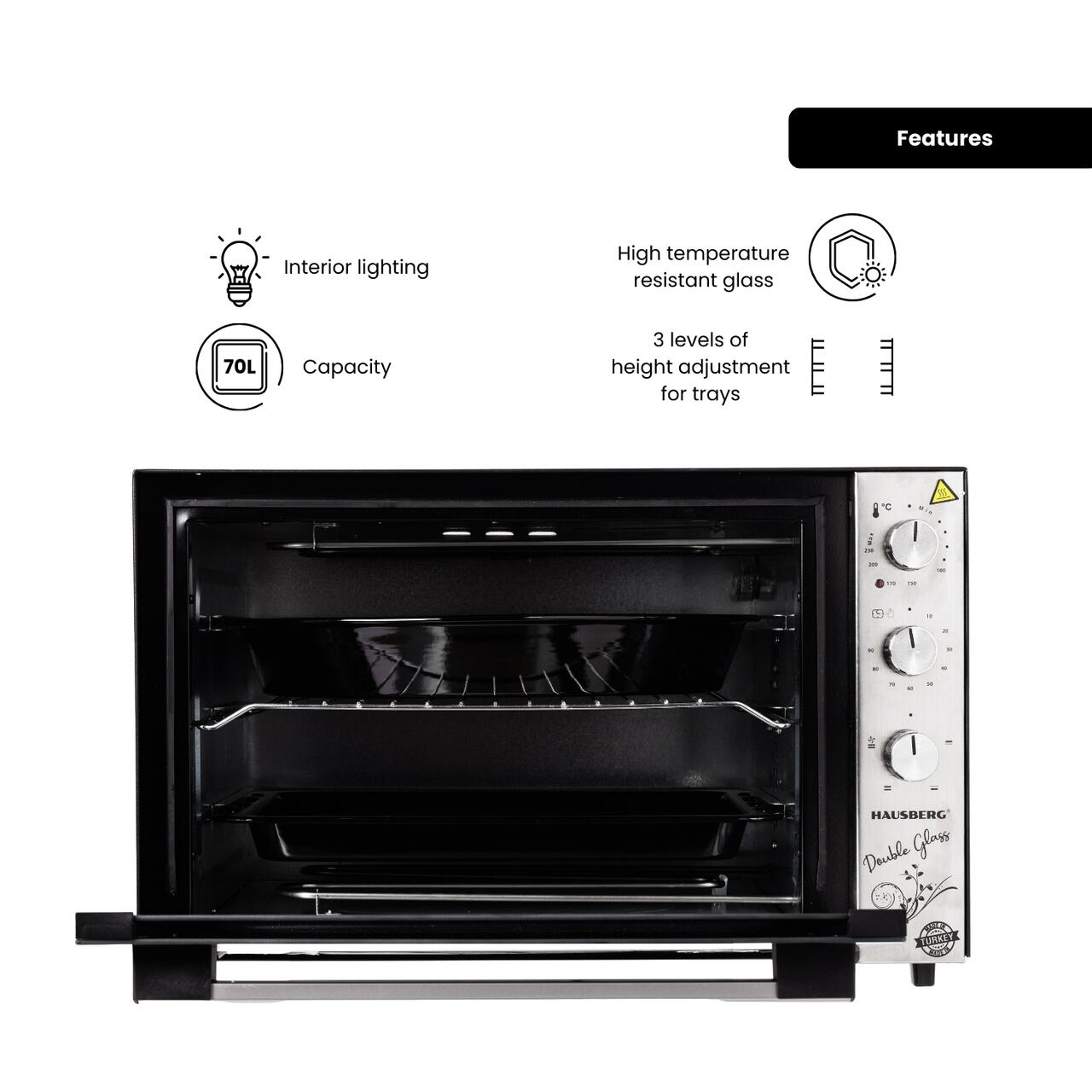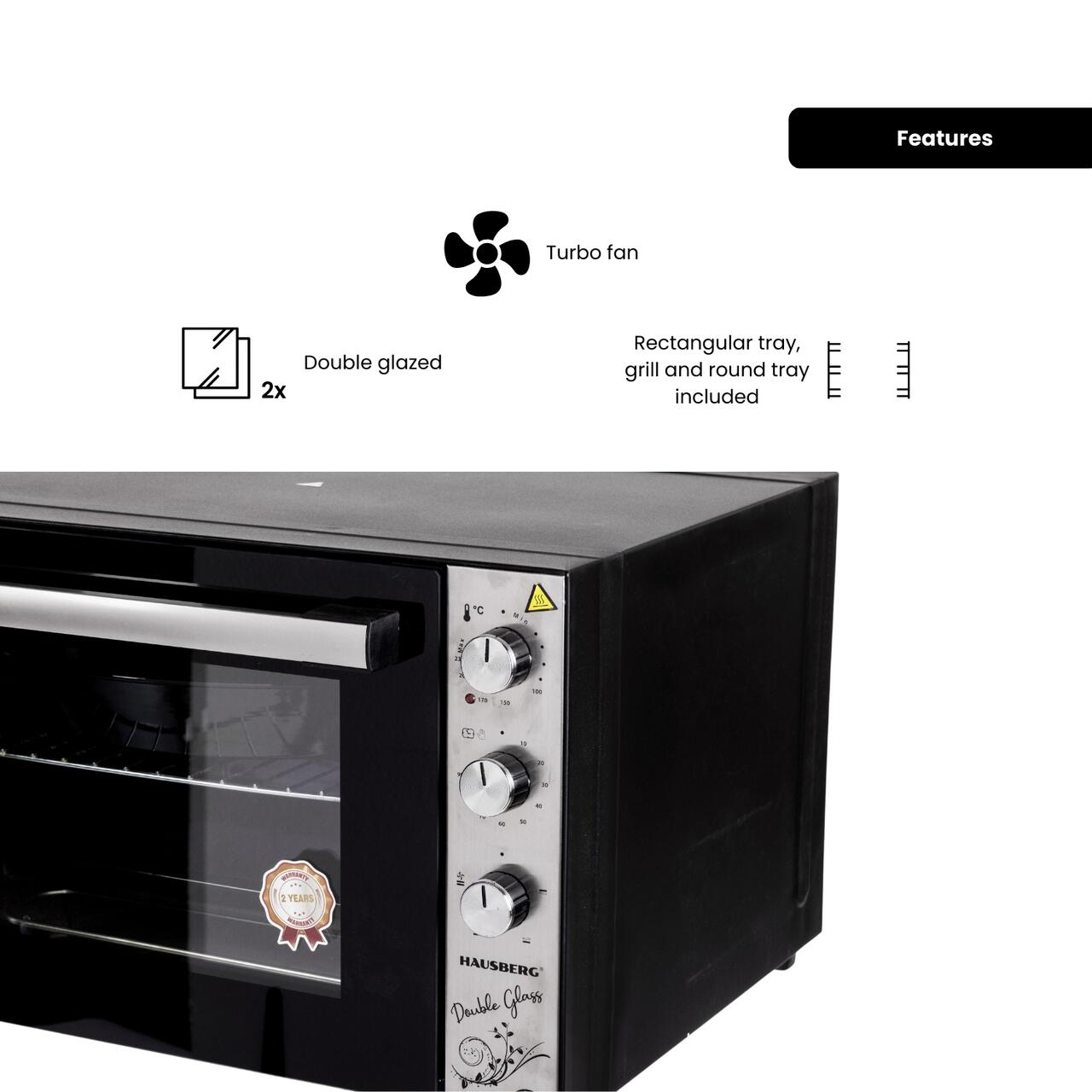 3 recenzii pentru Cuptor electric Hausberg HB-8020 capacitate 70l, ventilator turbo, Lampa interior, geam dublu, Negru