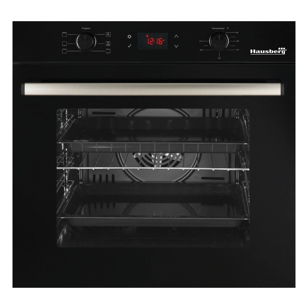 Cuptor electric incorporabil Hausberg HB-8054NG, Clasa A, volum 71L, putere 2225W, panou sticla termoizolant, termostat, timer, 7 functii, ventilatie, Negru