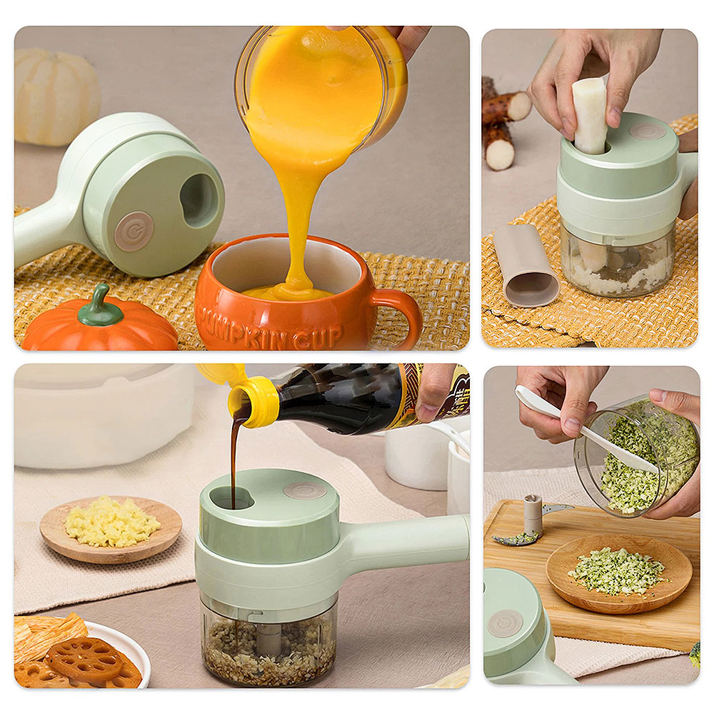 Tăiător de Legume Electric Multifuncțional 4 în 1 Tăiător de Nămol de Usturoi, Tocător de Usturoi ,Tocător de Tăiere, Mixer de Presare pentru Felii de Alimente