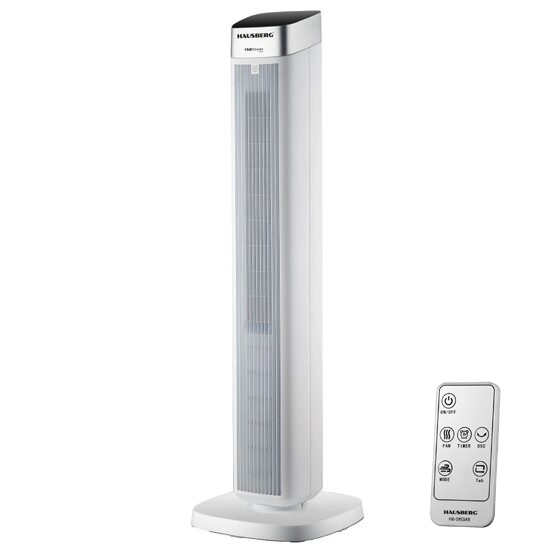 Ventilator turn digital Hausberg HB-5953AB, 55W, 41 inch, 3 viteze, 3 moduri, temporizator 24h, LED, oscilatie, telecomanda, difuzor parfum, alb