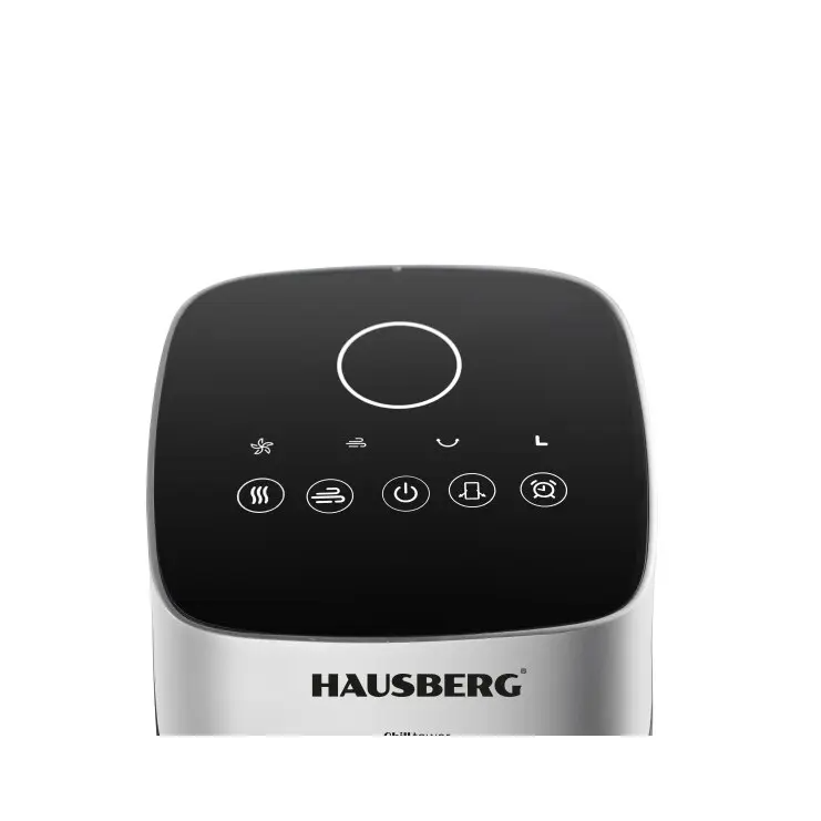 Ventilatorul turn digital Hausberg HB-5953AB este proiectat pentru a asigura un climat confortabil in spatii interioare, fiind o alternativa moderna la aparatele de aer conditionat. Cu o putere de 55W si o inaltime de 41 inch, acest aparat ofera 3 trepte de viteza si 3 moduri de functionare (Normal, Natural, Sleep) pentru a se adapta nevoilor utilizatorului. Temporizatorul digital de pana la 24 de ore permite programarea functionarii pentru confort personalizat si economie de energie. Afisajul LED si panoul tactil intuitiv, impreuna cu telecomanda inclusa, faciliteaza controlul aparatului. Oscilatia automata asigura o distributie uniforma a aerului, iar difuzorul de parfum integrat adauga o nota de prospetime in aer. Designul alb elegant si manerul de transport integrat il fac potrivit pentru orice decor interior.