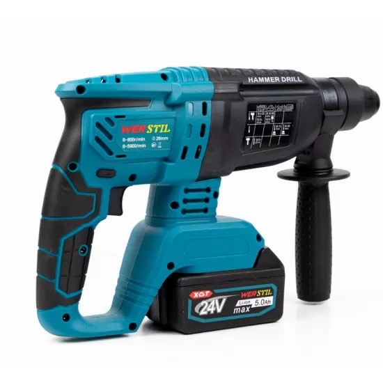Trusa 4 piese Werstil 3 acumulatori 48V, 5Ah,Ciocan Rotopercutor, Autofiletanta, Polizor unghiular, Cheie impact