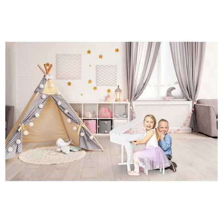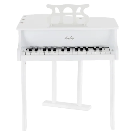 Pian din Lemn pentru Copii, 30 Clape, Scaun Inclus, Claviatura Hammer, Alb, Hape