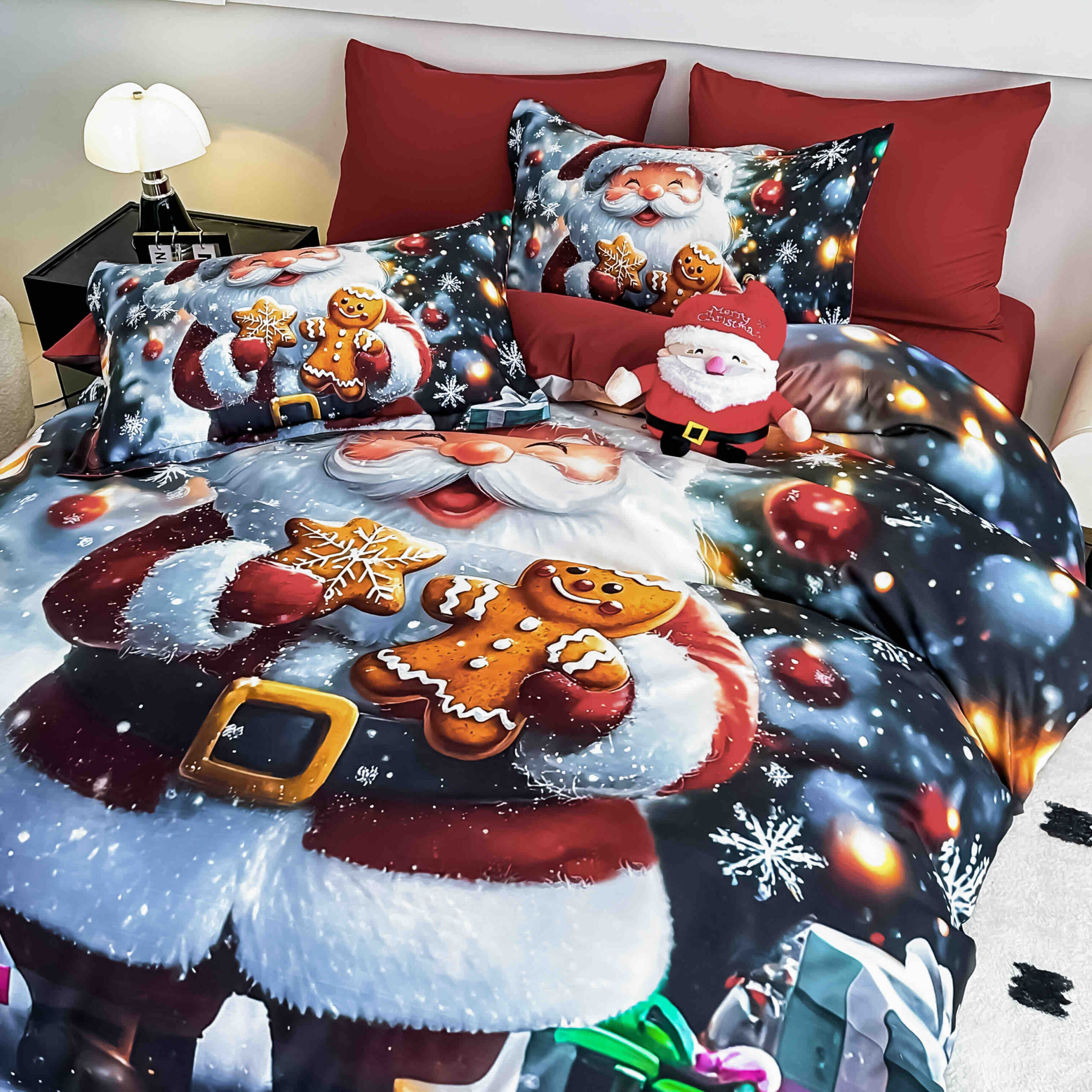 Lenjeria de pat are doua fete, pe o parte un imprimeu, pe cealalta alt imprimeu, astfel ca poti de fiecare data sa schimbi decorul camerei.