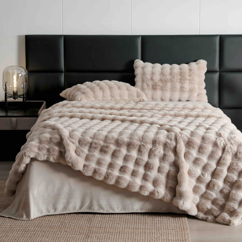 Transformă-ți dormitorul într-un adevărat refugiu de răsfăț cu această lenjerie de pat dublu, compusă din 6 piese, realizată din blăniță artificială de iepure – un material moale, dens și catifelat, care îți oferă o experiență senzorială unică. Fiecare componentă a setului este concepută pentru a aduce căldură, confort și o estetică luxoasă, perfectă pentru serile reci și atmosfera cozy de acasă.