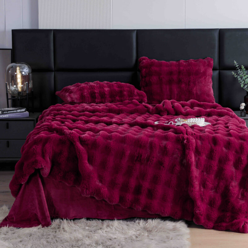 Lenjerie de Pat Dublu cu Blăniță Artificială de Iepure – 6 Piese, Ultra-Pufoasă și Călduroasă