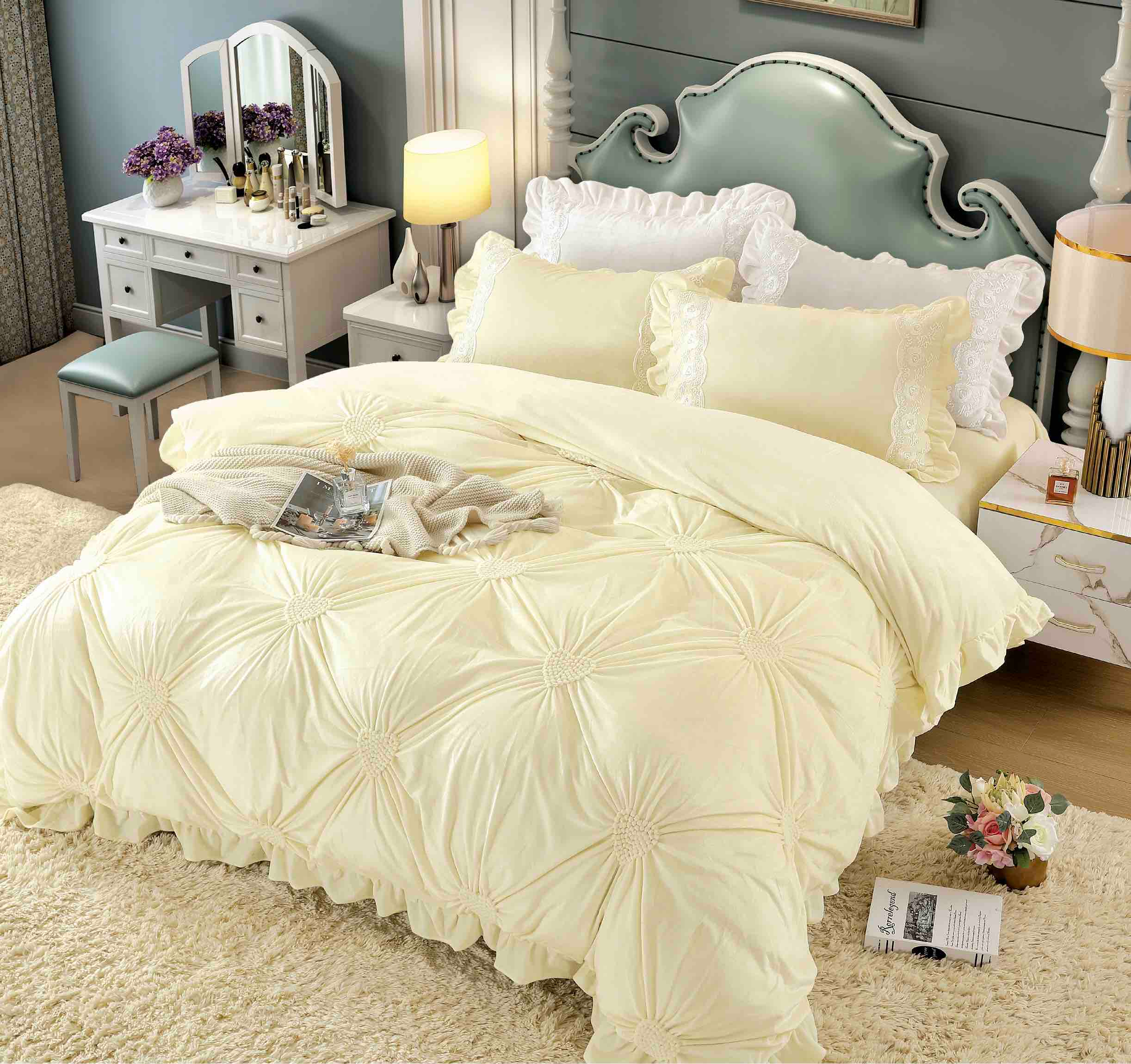 Catifeaua este un material tactil, senzual care mângâie, te invită să o atingi și te duce cu gândul la intimitate, relaxare și confort. Valoarea estetică a catifelei este una minunată, iar textura catifelei este moale, având o înfățișare luxuriantă. Lenjeria de pat din catifea, nu numai că arată și se simte altfel, dar aduce cu sine intimitate și căldură în cameră. Aceasta face interiorul mai confortabil si mai elegant si este de mare succes în amenajările moderne, aducând un plus de rafinament dormitorului tau.