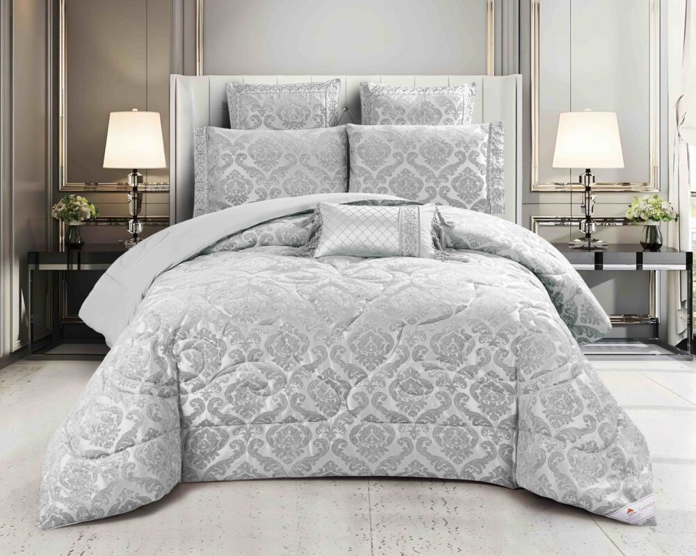 Lenjerie de Pat Luxury Jacquard Regal – 7 Piese cu Pilota Inclusă