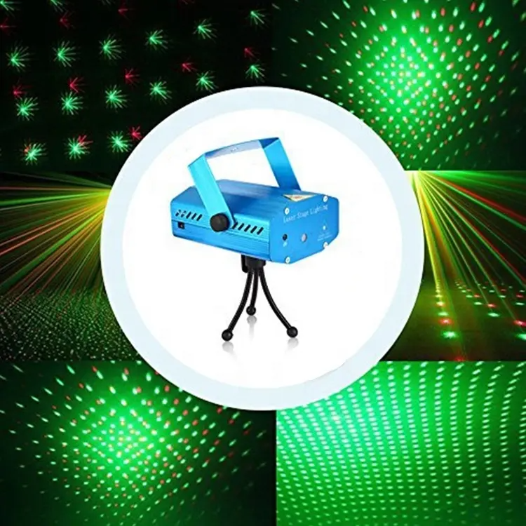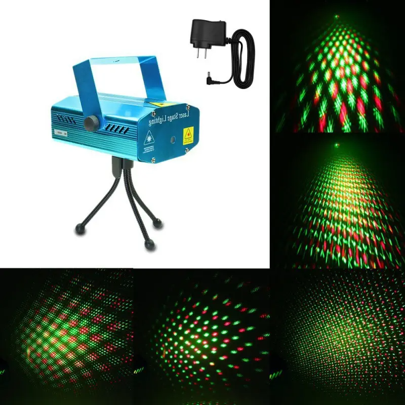 Mini Proiector Laser cu 5 Proiectii Lumini Disco, cu Jocuri de Lumini si Senzor de Sunet si cu 2 Diode – Rosu si Verde, Efect Disco