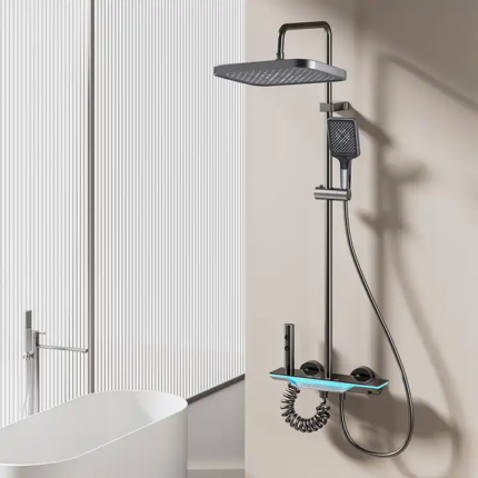 Coloana de Dus Smart, Afisaj LED, Control Termostatic, 4 Moduri de Pulverizare, pipa pentru cada, para dreptunghiulara tip ploaie, dus mobil, dus bideu, gri