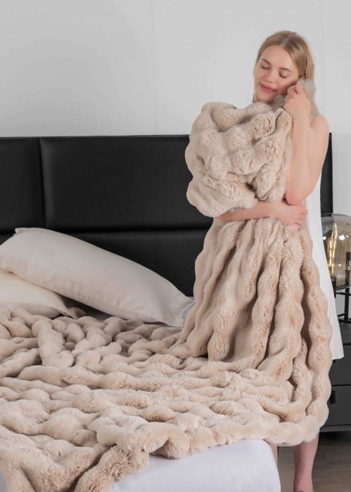 Pătură cu Blăniță Artificială de Iepure și Fermoar, 200 x 230 cm, este cadoul ideal pentru cei dragi, aducând un plus de rafinament și căldură în orice locuință. Construită cu un design elegant și o blăniță moale deosebit de plăcută la atingere, această pătură impresionează nu doar prin aspectul său luxos, ci și prin funcționalitatea practică: fermoarul discret permite inserarea unei pilote, oferind un strat suplimentar de căldură atunci când este nevoie.